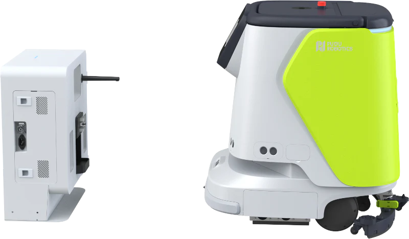 PUDU CC1 est une autolaveuse compacte et autonome avec une station de maintenance automatisée.